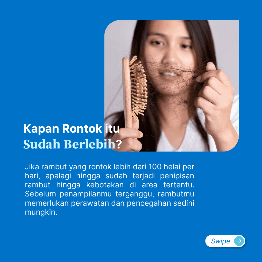 Jika kamu mengalami penipisan rambut jangan menunggu sampai terjadi kebotakan, karena sesungguhnya penipisan rambut bisa dicegah dan ditangani. Kamu perlu menaruh perhatian lebih jika rambut yang rontok lebih dari 100 helai per hari. Penyebab kerontokan dan penipisan rambut ada berbagai macam, yaitu faktor genetik, hormon, usia, imunitas tubuh, reaksi terhadap produk rambut tertentu, infeksi, efek dari obat-obatan, dan stres.